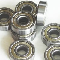 These are typical skate bearings that we use for our linear slide rail bearings. This package contains bearings that are based on the common machine requirements. Specification: 5/16" inner diameter, approximately 1/4" thick, and the outside diameter is approximately 7/8". There is a single race of ball bearings. The shielding (side of the bearings keeping the ball bearings and grease inside the race) is steel.