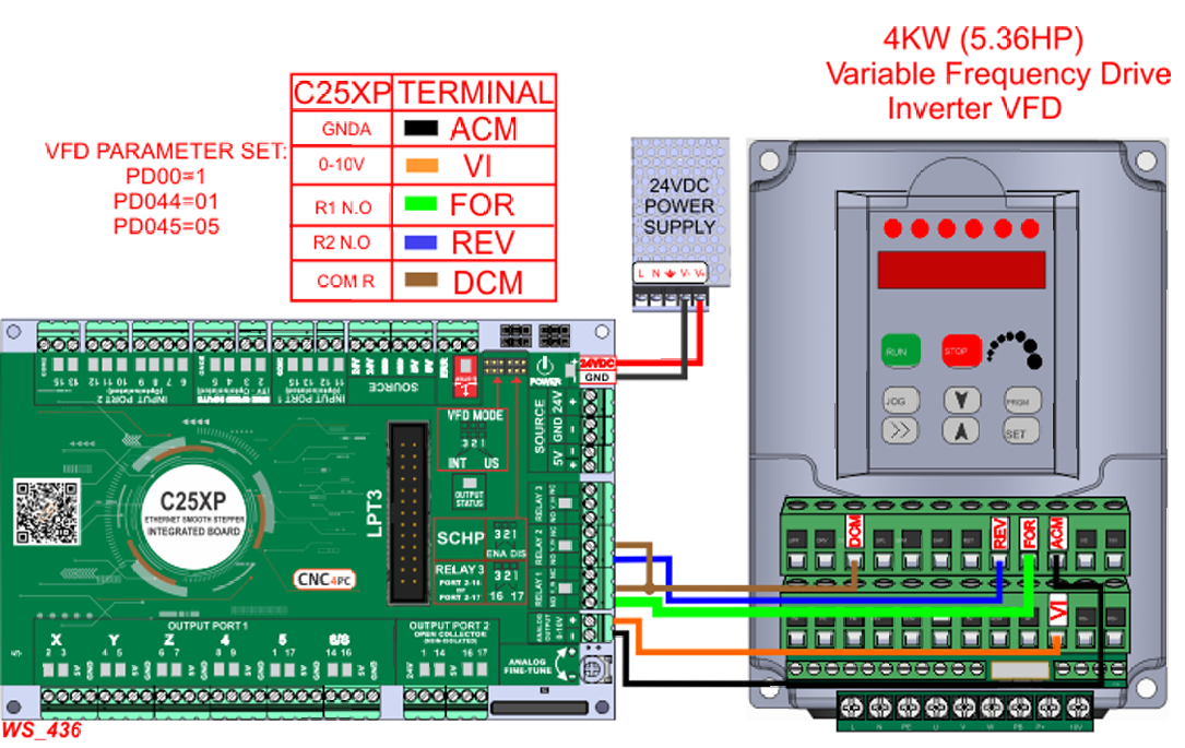 The C25XP is a comprehensive breakout board designed to simplify wiring and expand the capabilities of the Ethernet Smooth Stepper Motion Controller. This board converts the ESS's IDC header pins into convenient screw terminals while adding integrated safety monitoring, spindle control, and status indicators for a complete CNC control solution.