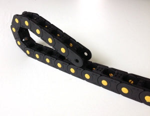 This is great heavy duty cable carrier for CNC Machines and any other motion related equipment. Don't let your cable get caught up in the machine. A cable chain is a chain of links that carry your cables, tubes, hoses and conduit so you don't have the possibility of the these cables and other things catching on parts of the machine. The cable carrier runs along the axis and you will need a little more than half of the axis travel length, depending on how your motion and axis is designed. The inside diameter of this cable carrier is 1 inch (25.4 mm) x 0.87 inches (22.1 mm). To determine the length of cable carrier you will need for a single axis, measure the axis travel of your machine, divide this by 2 and add 12.5 inches. The radius of the curl is 2 inches. Purchase brackets separately. . If you find a lower price, let us know.