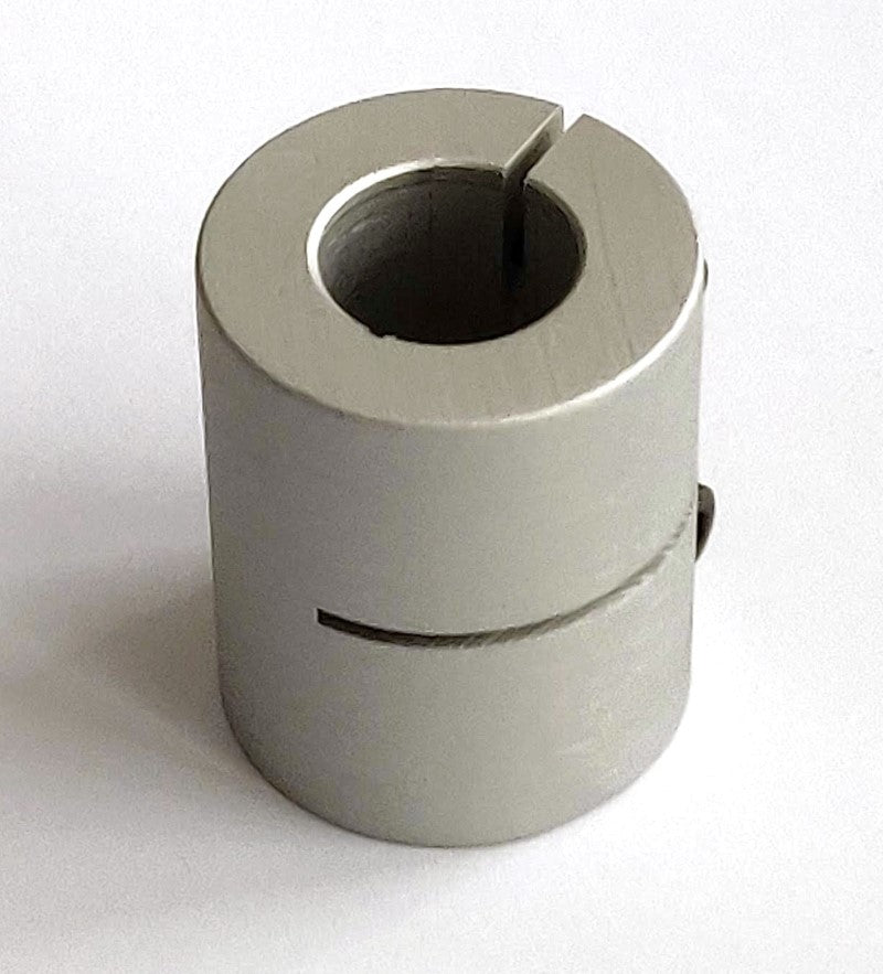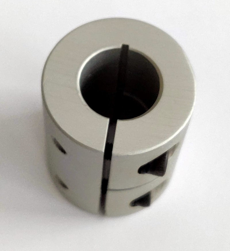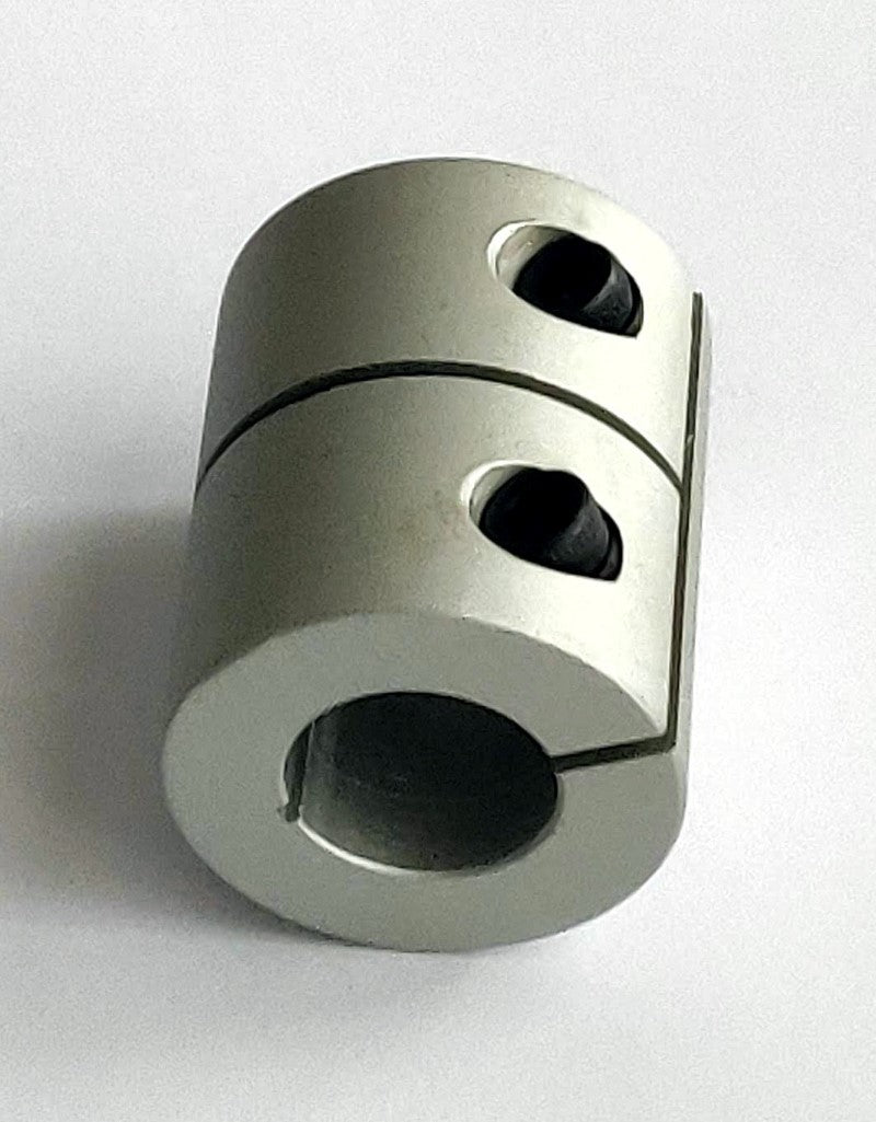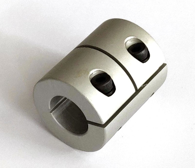 Generally, the motor shaft with a 1/2" diameter will be inserted in one end, and a shaft, or lead screw also measuring 1/2" in diameter will be inserted into the other end. The screws that clamp the shafts will be tightened. These steel clamping coupling are for use with high torque motors and high inertia when the motor is changing directions. 1/2" to 1/2" - (Rigid Coupling (Aluminum) - 1/2" bores at each end)