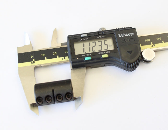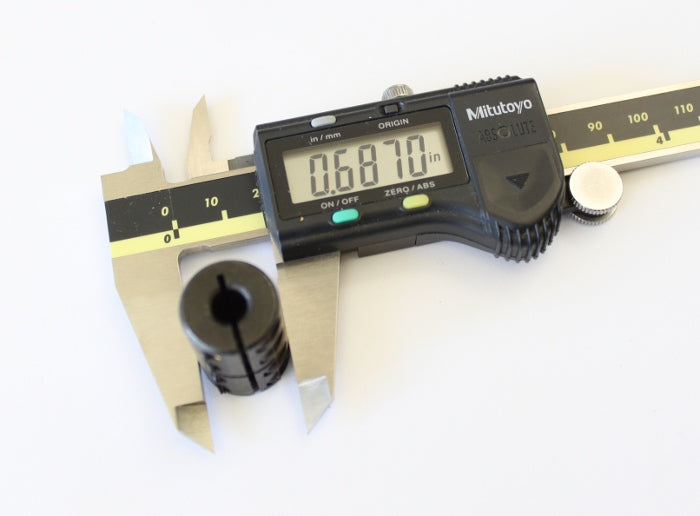 Rigid couplings will keep backlash to a minimum, since the coupling is one single piece. Generally, the motor shaft with a 1/4" diameter will be inserted in one end, and a shaft, or lead screw also measuring 1/4" in diameter will be inserted into the other end. The screws that clamp the shafts will be tightened. These steel clamping coupling are for use with high torque motors and high inertia when the motor is changing directions. This coupling is called a clamping coupling or clamp coupling. The length of this rigid coupling is 1.124 inches (28.55 mm). The diameter is 0.687 inches (17.45 mm). The tool needed to tighten the coupling is a hex key or allen wrench (not included) with a size of 3/32 inches. There are four screws in total, two for each shaft that is inserted into this coupling.