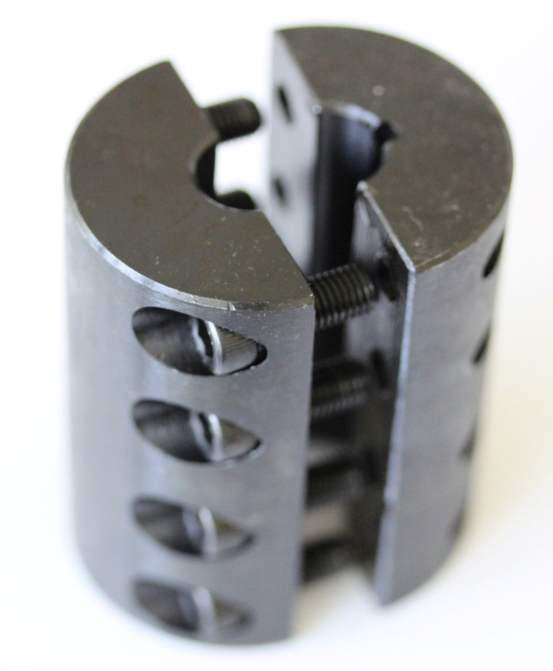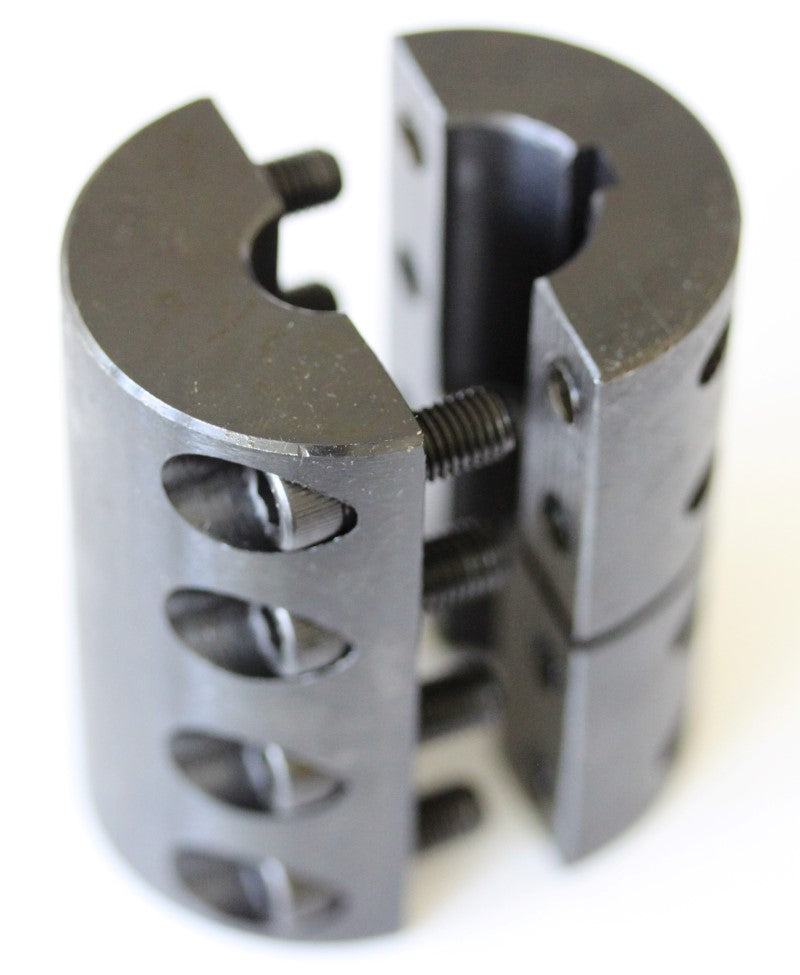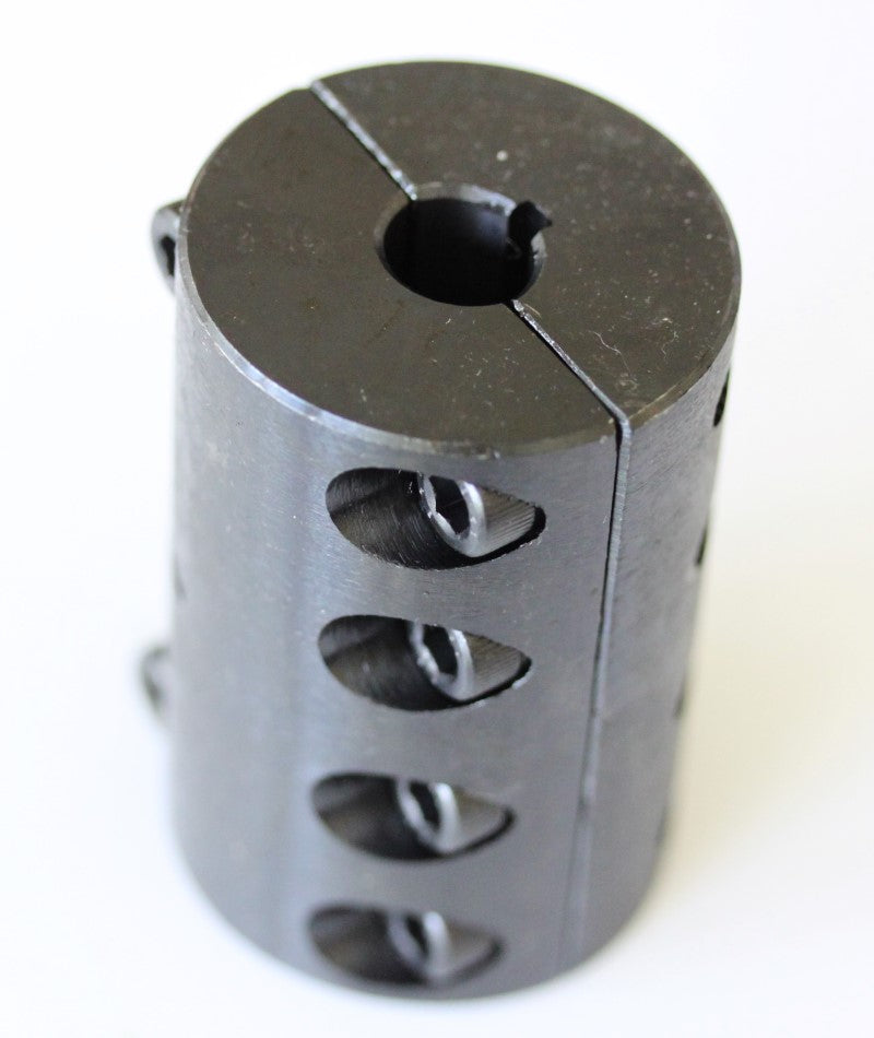 Generally, the motor shaft with a 1/2" diameter will be inserted in one end, and a shaft, or lead screw measuring 3/4" in diameter will be inserted into the other end or vice versa. The screws that clamp the shafts will be tightened. These steel clamping coupling are for use with high torque motors and high inertia when the motor is changing directions.